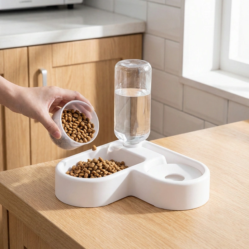 2-i-1 Hundmatskål Automatisk Vattenskål Matstation för husdjur