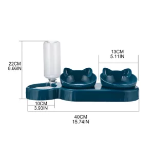 3 i 1 upphöjda matskålar för katt med vattenautomat – matstation för husdjur