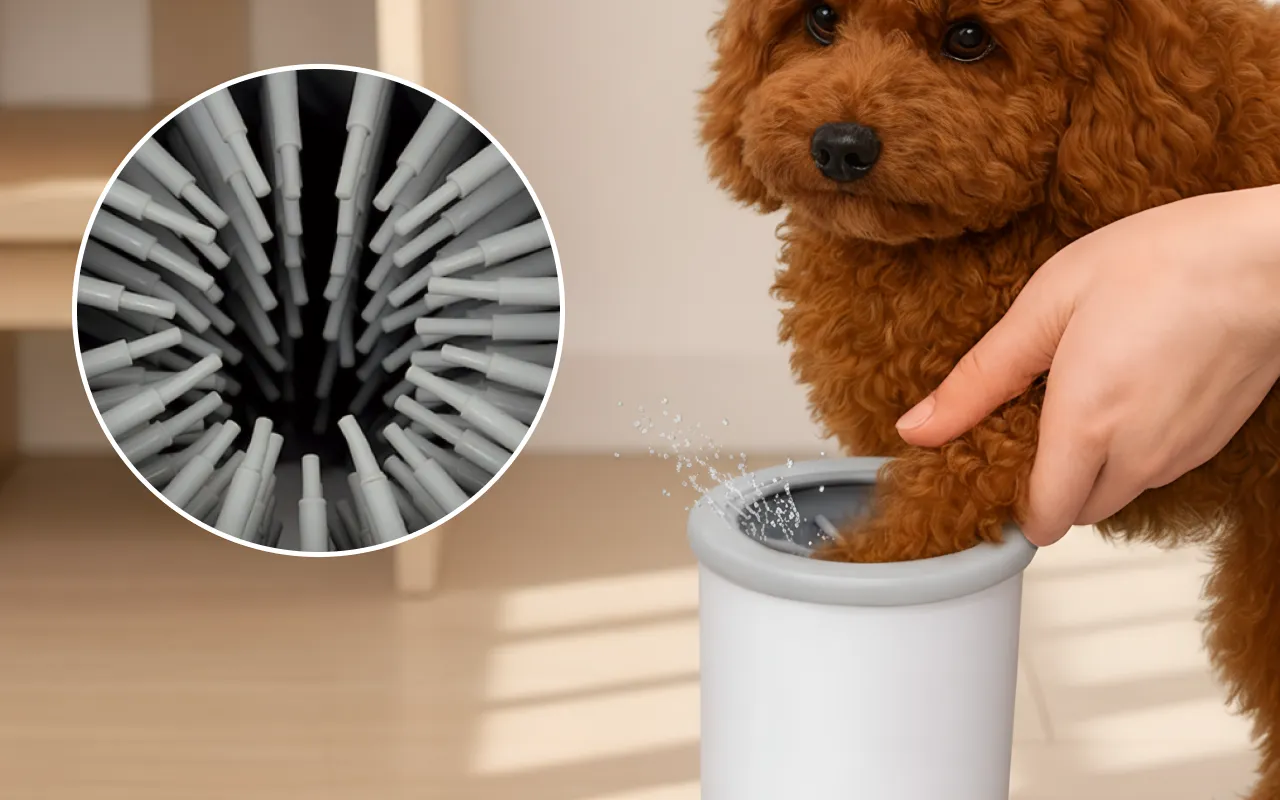 Jag visste inte att det kunde vara så enkelt att rengöra tassar. De mjuka silikonborsten gör min hund bekväm och mitt hem så mycket renare!