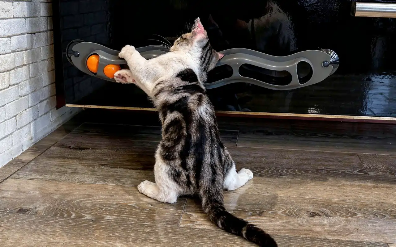 Min kattunge försöker överlista bollarna men kommer alltid tillbaka för mer. Vi har båda kul med den här grejen. Så enkel att montera.