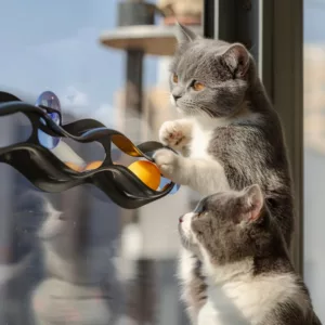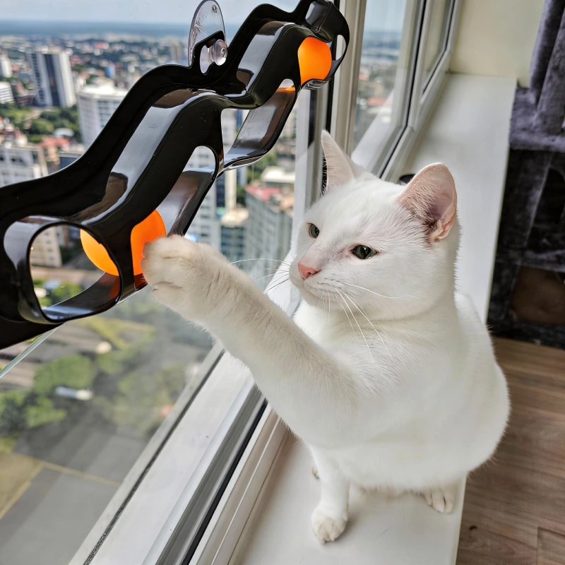 Min katt blir tokig och försöker fånga de små bollarna som rullar runt. Det var superenkelt att fästa på fönstret, och hon älskar det varje morgon.
