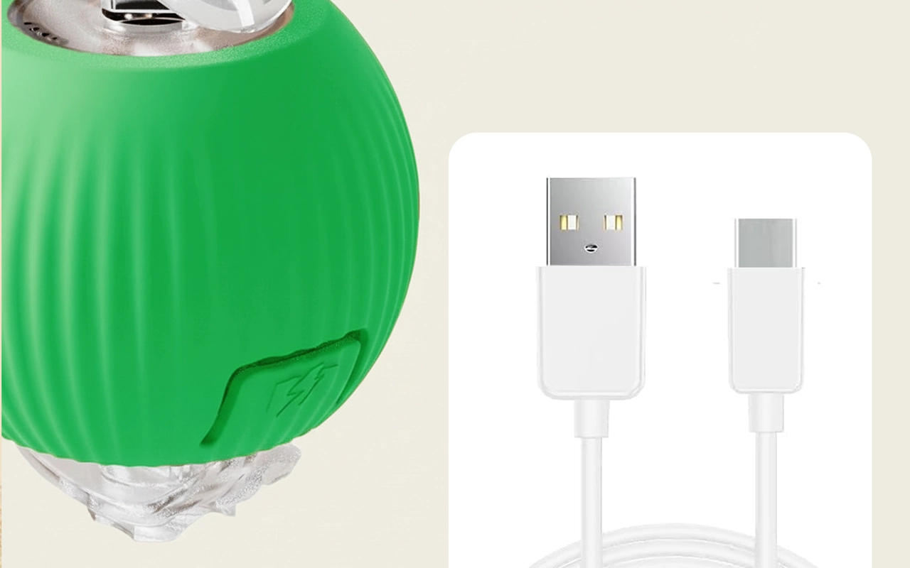 Väldigt robust! Min kattunge är vild, men bollen klarar allt och fortsätter rulla. Snabbladdning gör den lätt att använda när som helst.