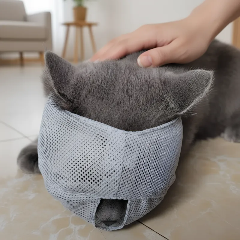 Andningsbar kattmunkorg i nät för skötsel