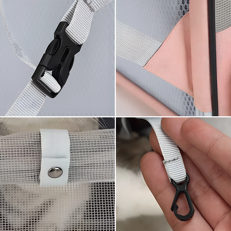 Frisk luft flödar fritt genom meshnät på alla sidor. Husdjuren håller sig avslappnade och svala under promenader eller utflykter.