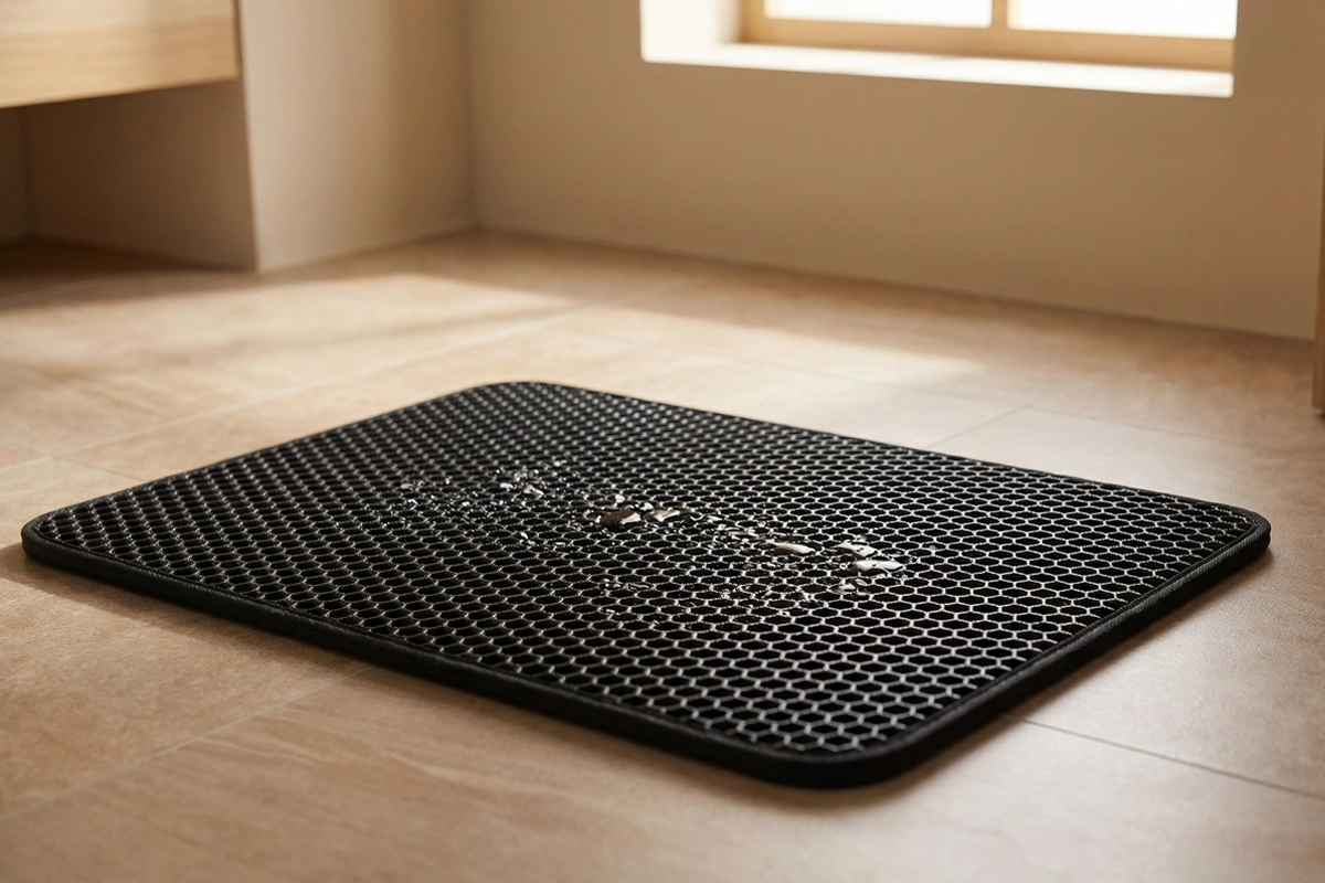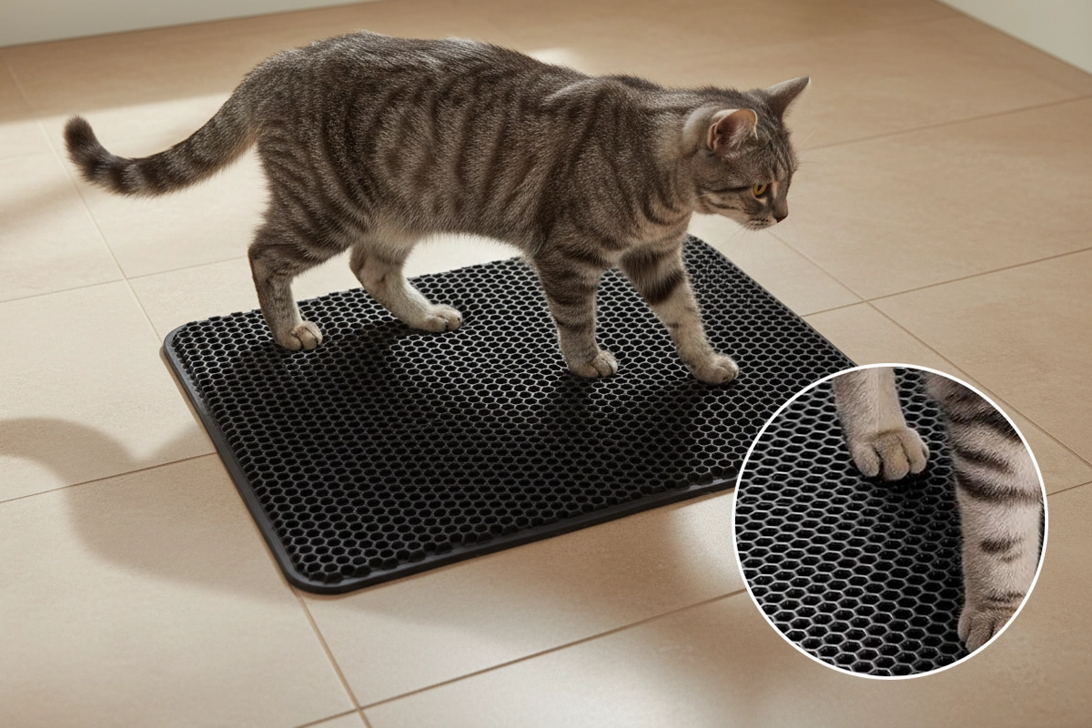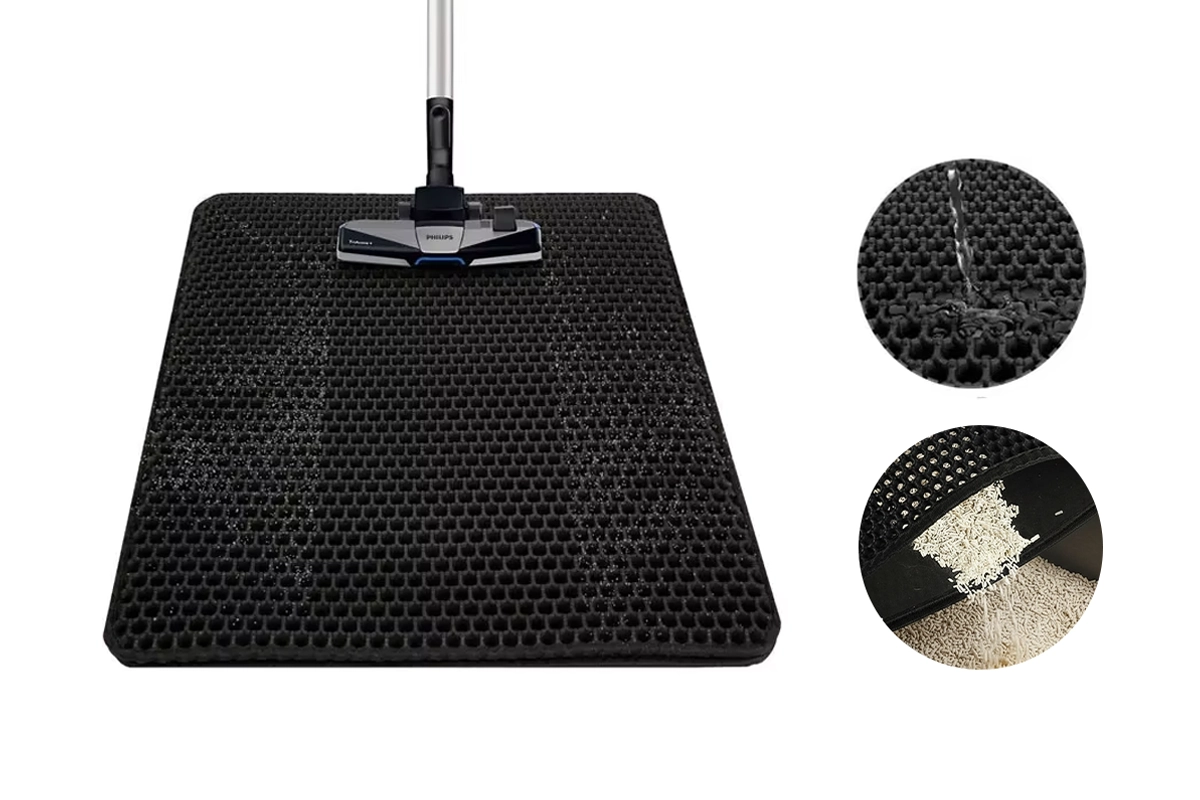 Primdog Kattlådematta gör städningen snabb och håller tassarna rena. Dess smarta bikakestruktur fångar varsamt upp varje löst korn. Inga fler dagliga sopningar av hörn eller oro över gömd smuts.