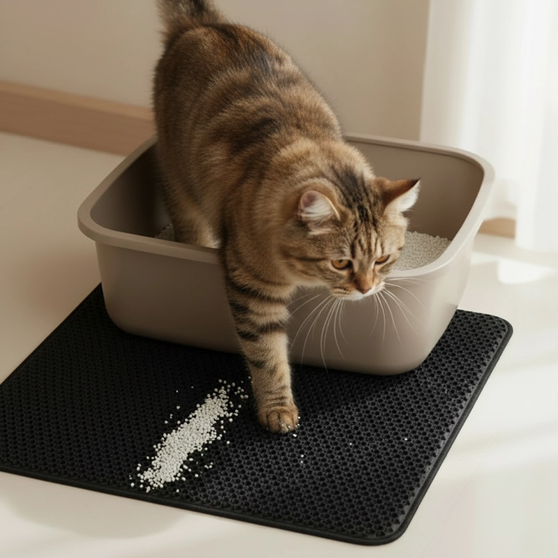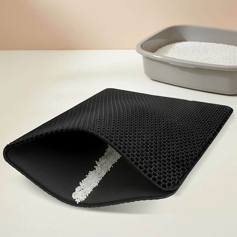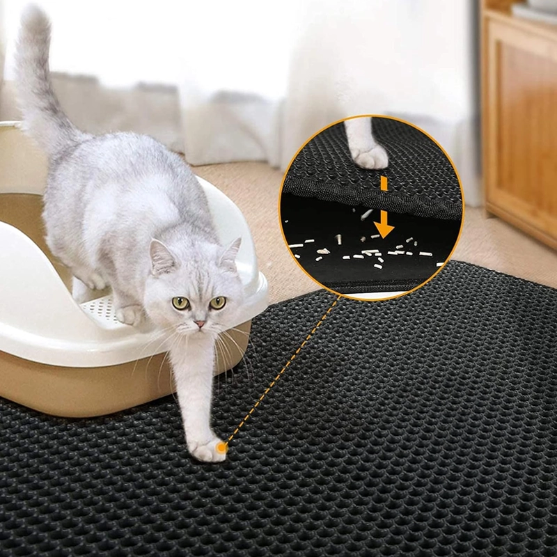Mjuk textur känns behaglig under fötterna och skyddar känsliga tassar. Katter tycker om att gå på mattan efter toalettbesöket.