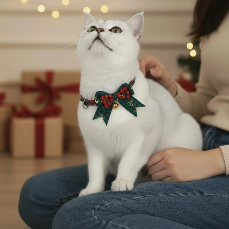 Min katt ser extra söt ut denna jul med sin nya rosett! Rutigt mönster är superroligt, och den gyllene bjällran klingar när hon springer runt.