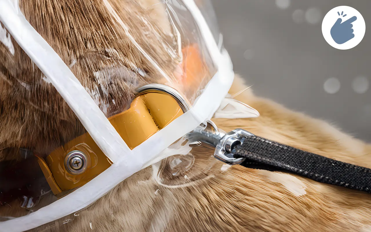 Speciell öppning gör det enkelt att fästa koppel. Promenaderna förblir njutbara eftersom regnjackan aldrig behöver tas av.