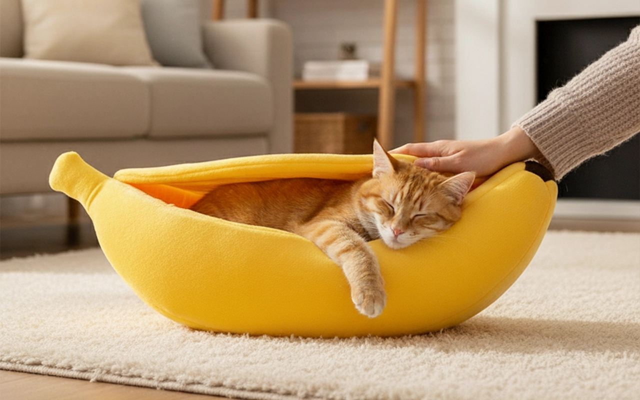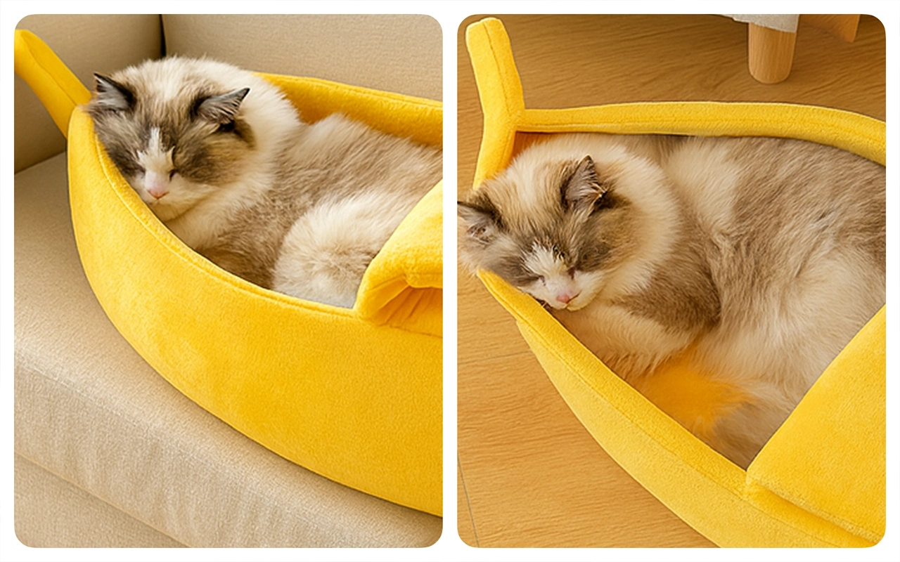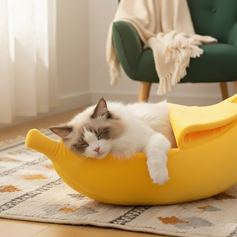 Den ljusa bananformen lyser upp ditt hem och sprider leenden. Besökare märker direkt ditt husdjurs roliga och unika hem.