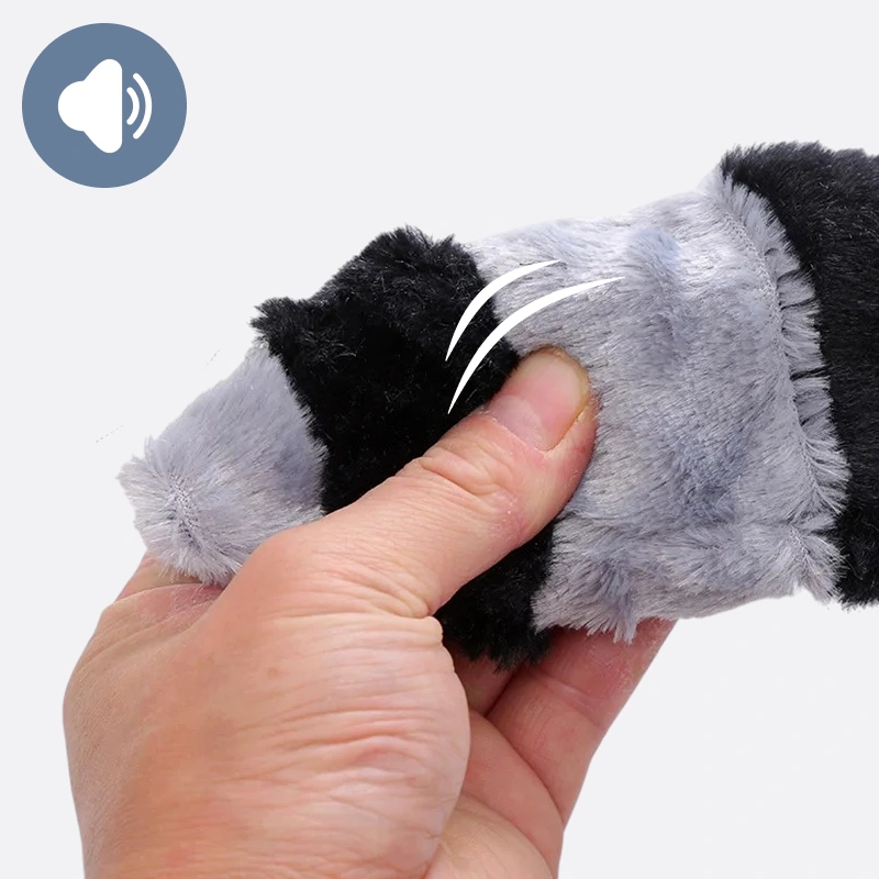 Fleece-tyg känns bekvämt i mun och tassar. Säkert för inomhuslekar utan att repa ömtåliga ytor.