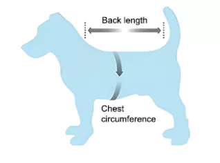 • 1. Mät din hunds rygg från basen av nacken till svansen.