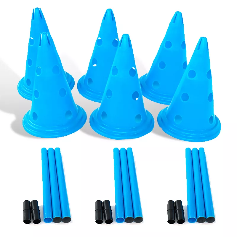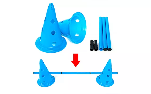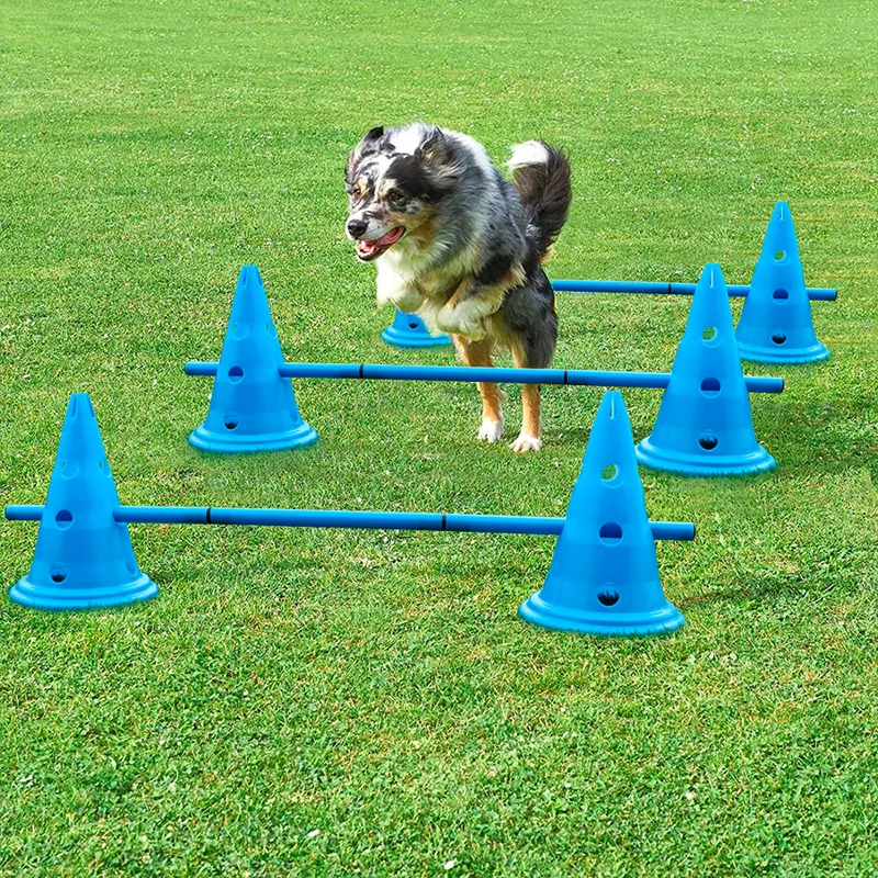Setet innehåller allt du behöver: koner, stolpar och hinder. Allt du behöver för att skapa en stimulerande agilitybana ingår.