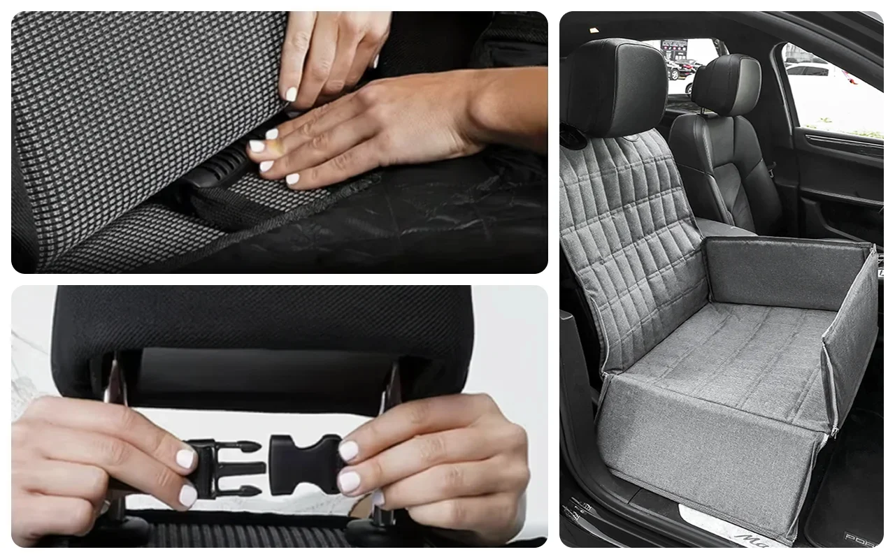 Sätt upp Primdog Bilskydd för Hund snabbt innan varje resa. Justerbara remmar och ankare håller allt säkert på plats.