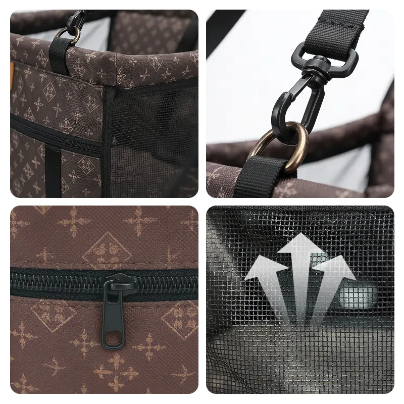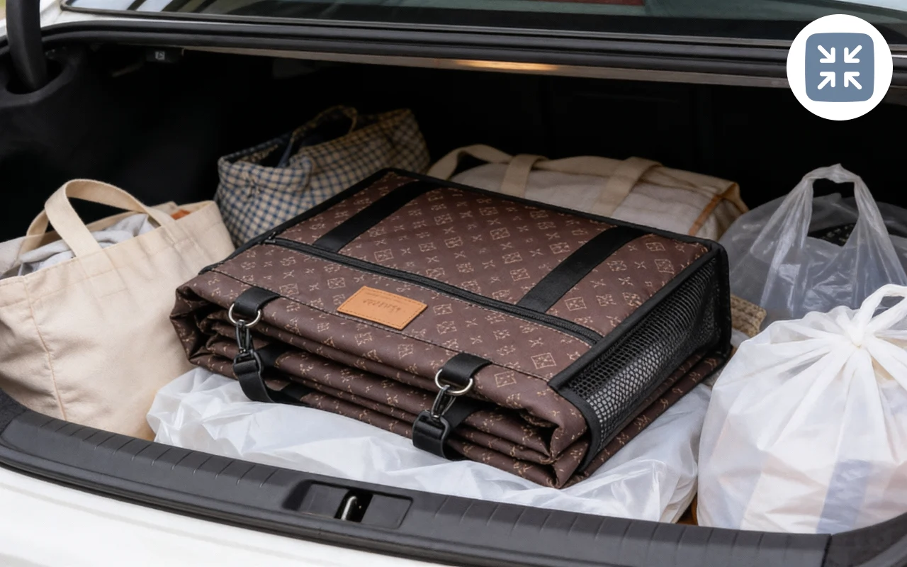 Den lättviktsvikbara designen gör förvaringen enkel mellan åkturerna. Mesh-fickor hjälper till att organisera leksaker, koppel och godis prydligt.