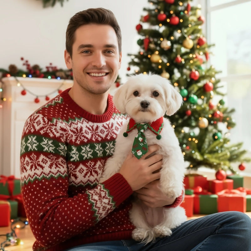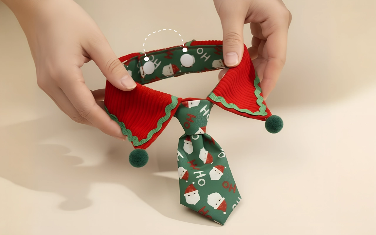 Min hund såg bedårande ut i det här festliga halsbandet! Superlätt att sätta på, passformen var perfekt och det mjuka materialet störde honom inte alls. Vi fick så många komplimanger på våra julfoton! Jag kommer definitivt använda den igen till nyår; den ser fortfarande helt ny ut.