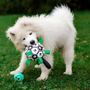 Denna fotbollsleksak avleder husdjur från att tugga på saker och andra oönskade beteenden. Den hjälper till att lindra tristess, stress och ångest hos din hund.