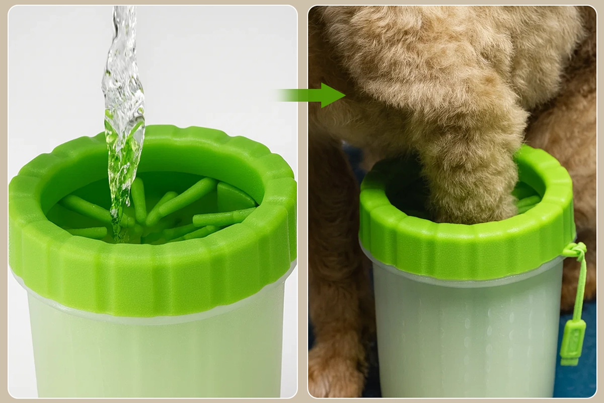 Mjuka silikonborstar förhindrar repor på känsliga trampdynor. Husdjuren njuter av komfort medan deras tassar blir noggrant rengjorda.