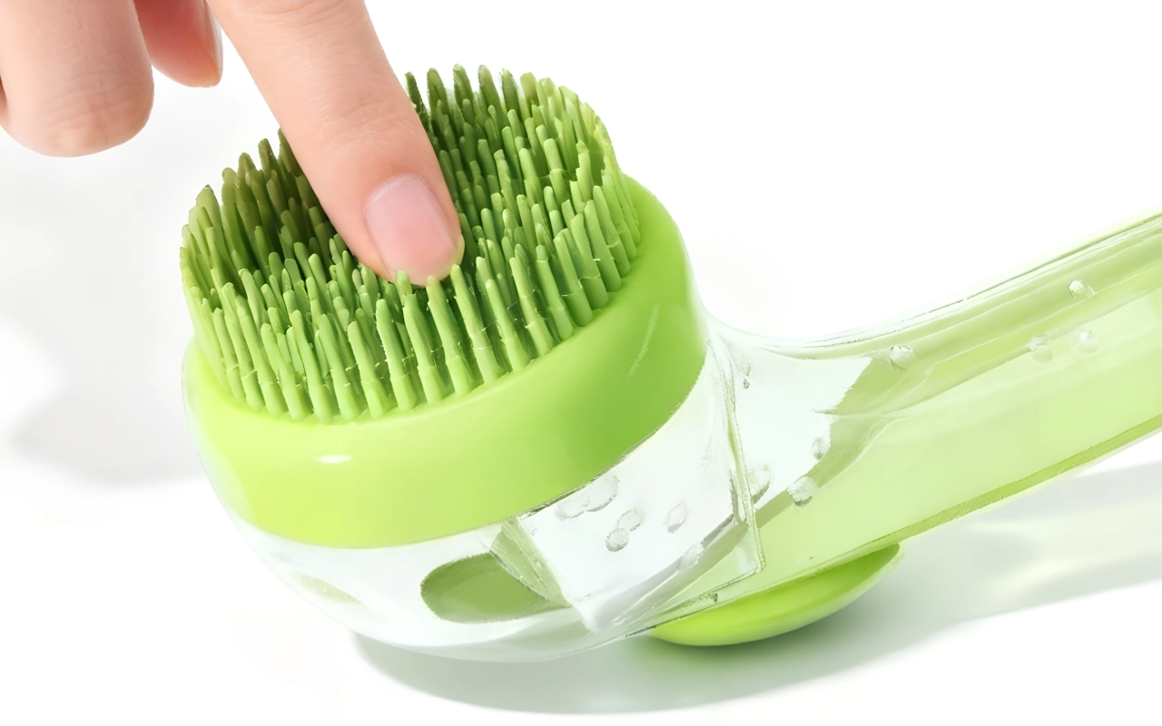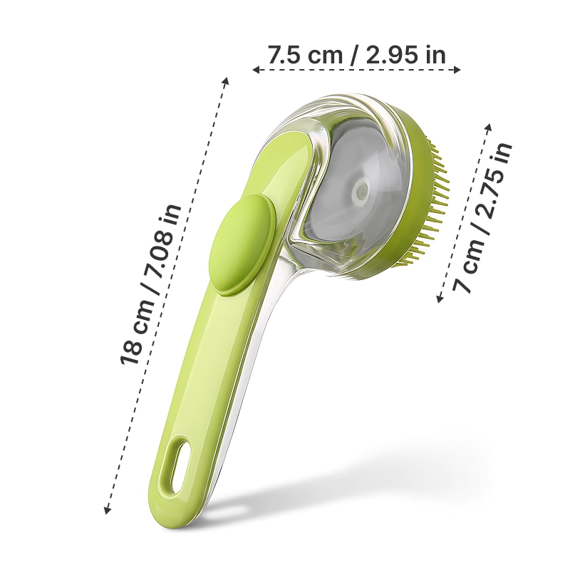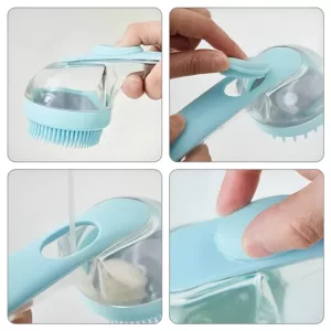 Hundborste i silikon med schampofördelare och långt handtag