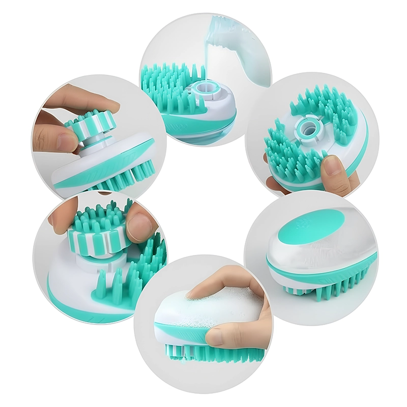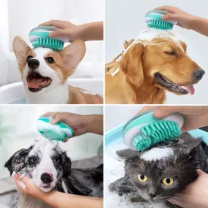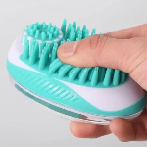 Hundborste i silikon med schampodispenser