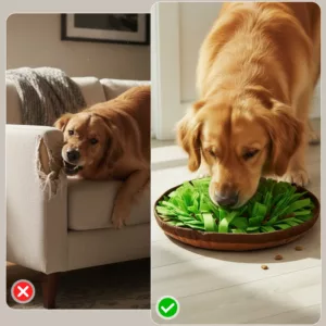 Uttråkning hemma kan snabbt göra husdjur rastlösa. Primdog Snuffle Mat förvandlar måltiden till en rolig lek för din fyrbenta vän. Den hjälper till att minska ångest och uppmuntrar lugnt beteende. Hundar håller sig mentalt aktiva och njuter av varje måltid.