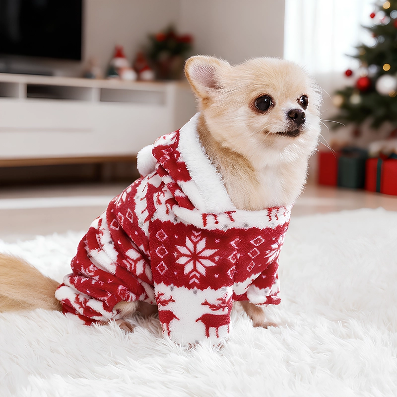 7 recensioner av Hundvarma fleecepyjamas med huva – jul