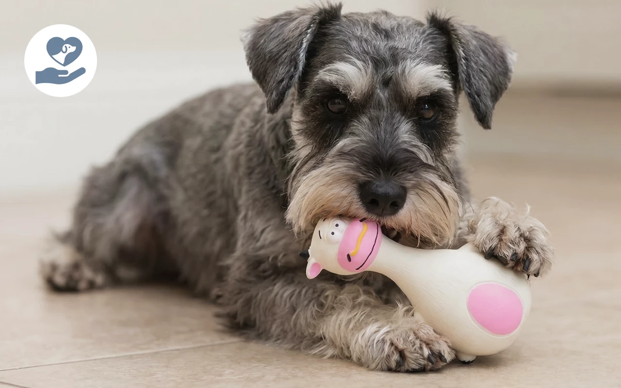 Tecknad pipleksak som får mina små hundar att tugga glatt.