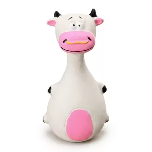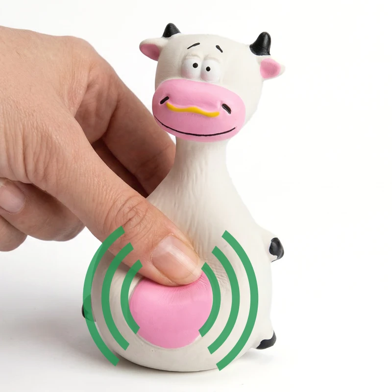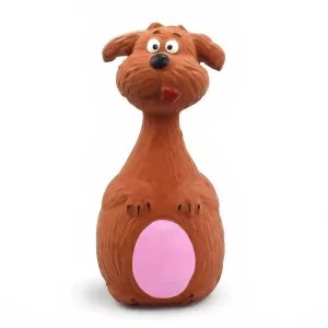 Vår hund blir lätt uttråkad, men den här tecknade tuggleksaken håller honom sysselsatt. Han älskar att pipa på den runda magen och gummit verkar vara skonsamt mot tandköttet.