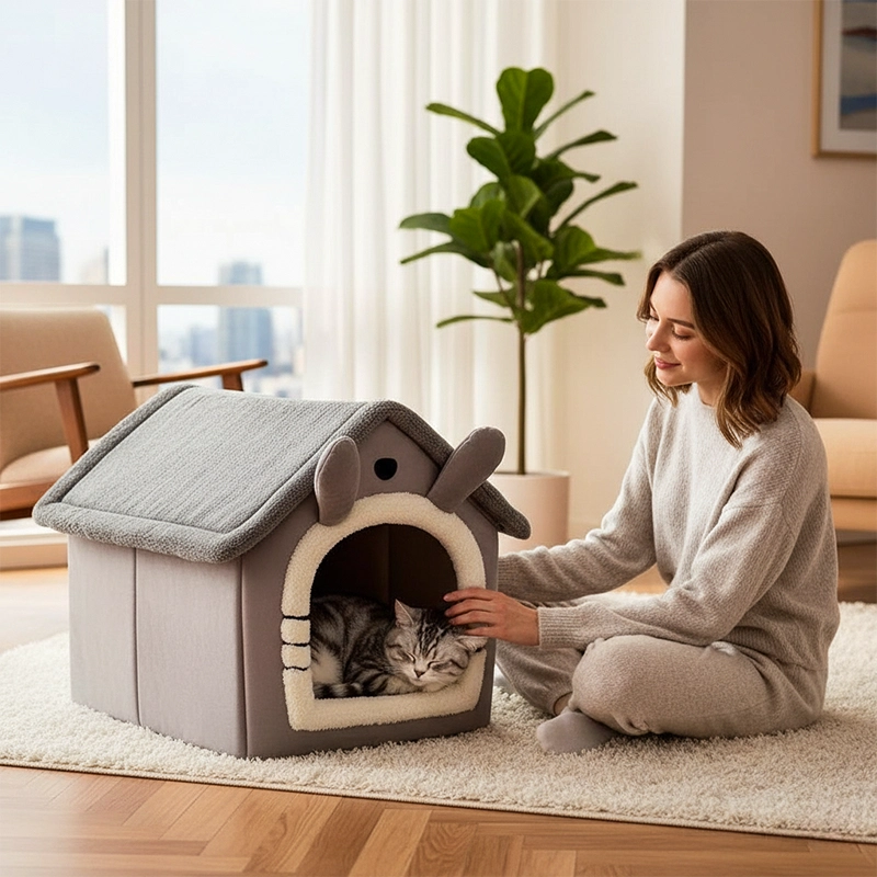Den vikbara designen är fantastisk för förvaring. Min katt känner sig tryggare inuti, och botten halkar inte alls, även när hon hoppar in snabbt.