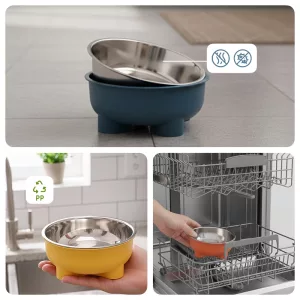 Fyra stadiga ben förhindrar att skålen glider, så inget välter eller vinglar. Husdjur äter lugnt och bekvämt utan spill under fötterna.