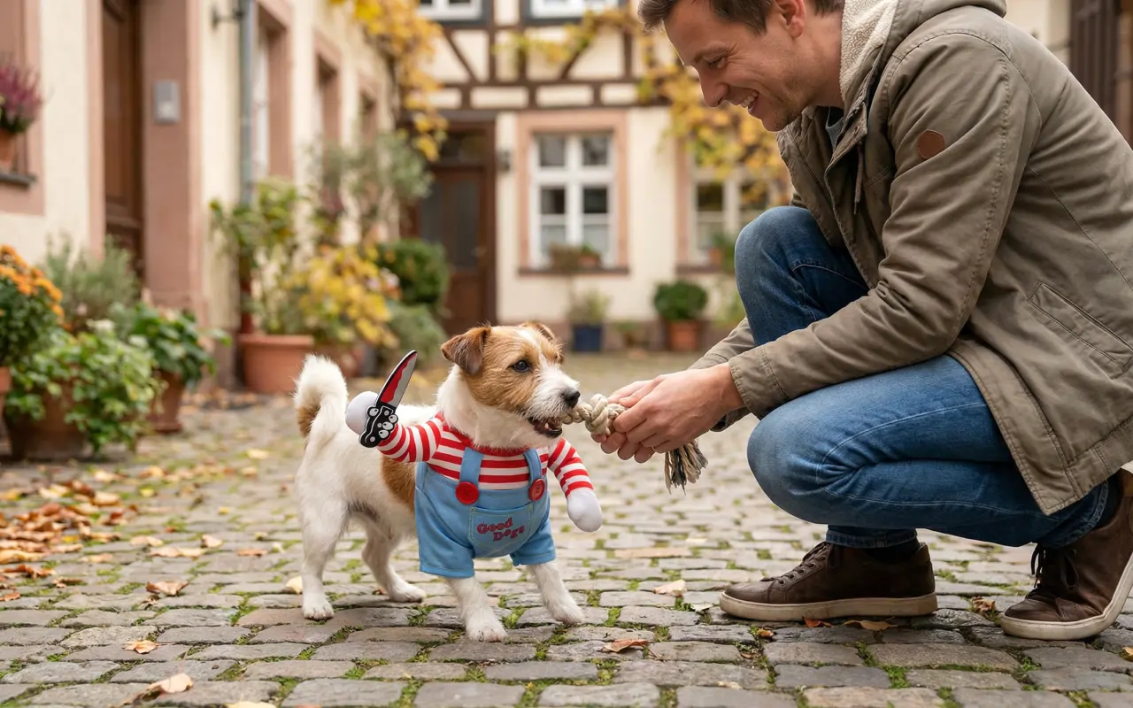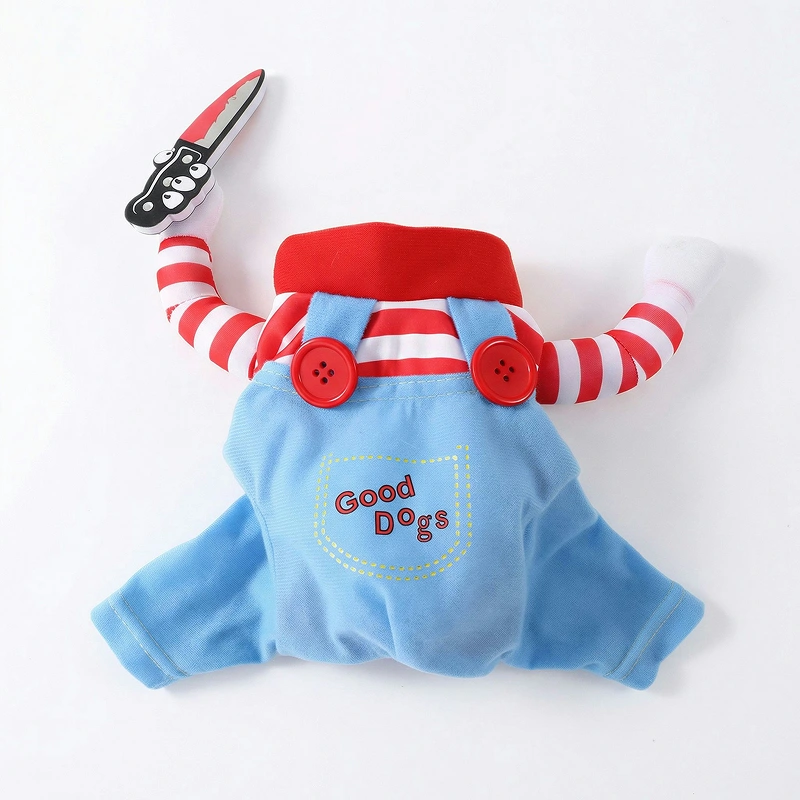 Rolig hunddräkt med kniv