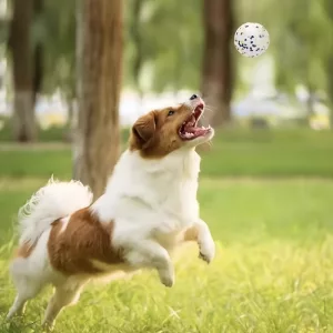 Vår studsande boll är idealisk för hundar med starka käkar som älskar en utmaning. Den tål aggressivt tuggande och håller längre än vanliga leksaker.