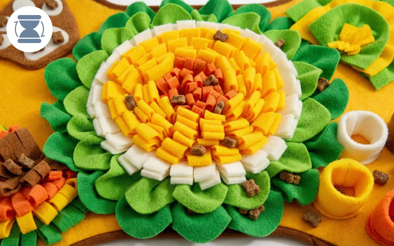 Bra för hjärngympa och att sakta ner mattiden. Min hund är sysselsatt och glad med sin matta varje dag—den har blivit ett måste i vårt hem.