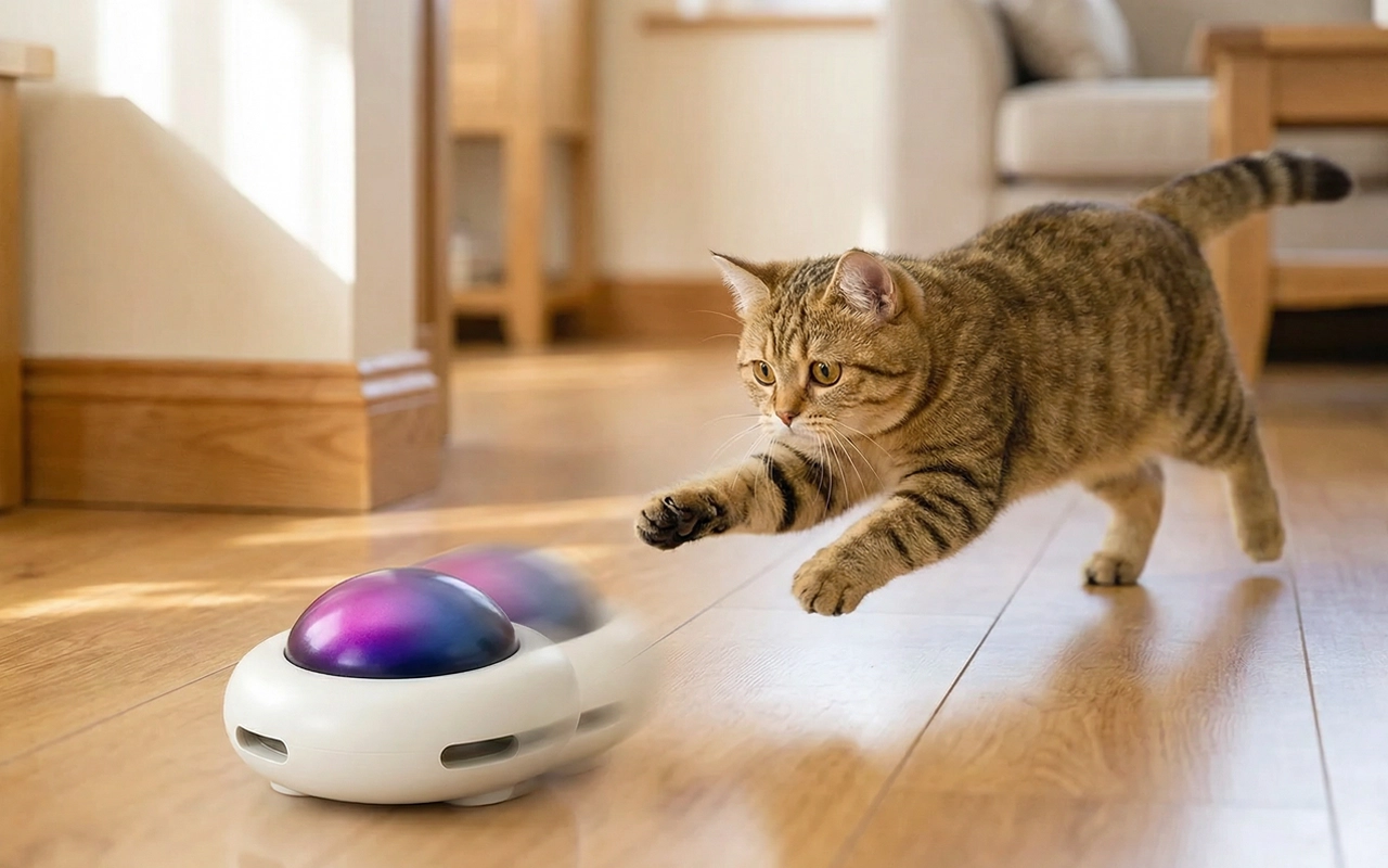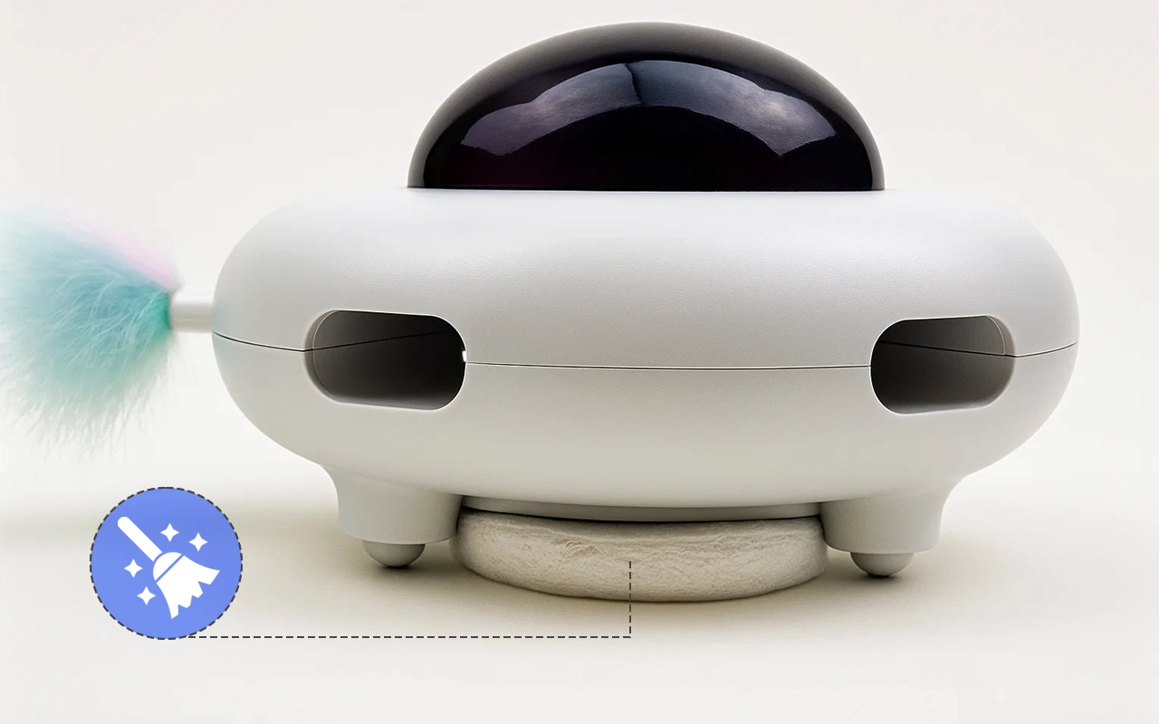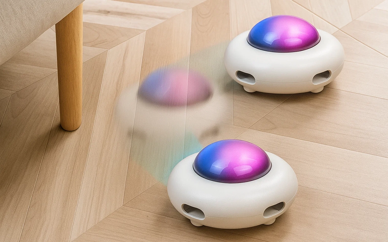 Automatisk styrning gör att kattleksaken inte fastnar någonstans. Smidiga rörelser anpassar sig till alla ytor för stressfri lektid.
