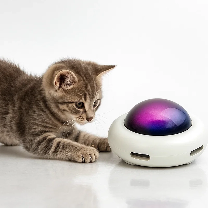 Primdog Interaktiv UFO Kattleksak ger oändligt med nöje. Tristess försvinner när lekfulla rörelser roar nyfikna tassar. Livliga färger vägleder varje session och håller stämningen ljus. Se ditt husdjur jaga, smyga och hålla sig frisk varje dag.
