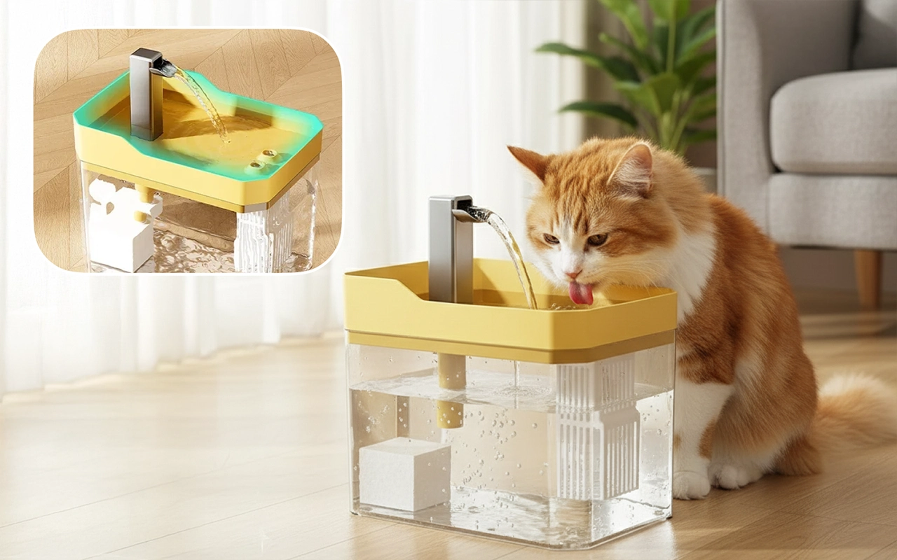 Flerlagers filtrering tar enkelt bort damm och små partiklar. Husdjur njuter av friskt, rent vatten varje gång.