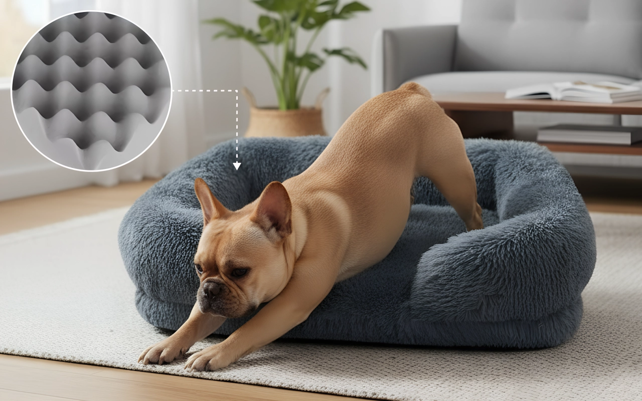 Upphöjda kanter skapar en mjuk och trygg känsla för valpar. Nervösa hundar slappnar av snabbare och sover ostört.