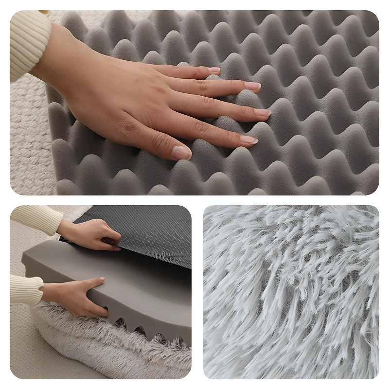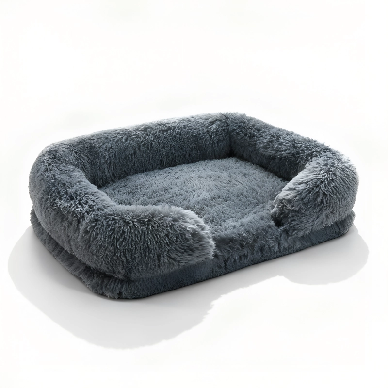 Stor ortopedisk hundbädd lugnande fluffig djurkudde med kanter