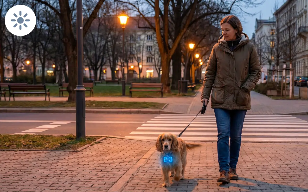 Ljusa lampor gör att andra lätt kan se din lurviga vän. Välj mellan flera iögonfallande färger för varje promenad.