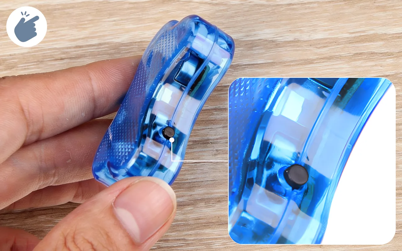 Växla belysningslägen med bara en knapp. Den robusta klämman ger enkel och säker fastsättning i halsbandet varje gång.