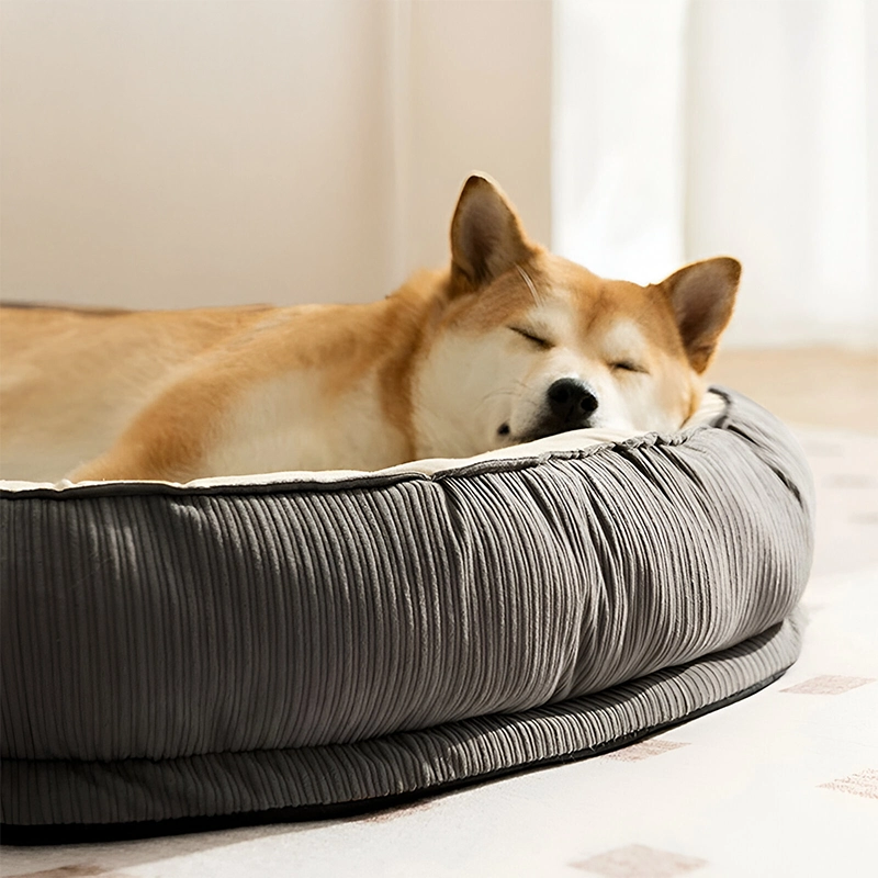 Upphöjda kanter ger husdjuret en mjuk plats att vila huvudet på. Den rundade formen hjälper oroliga hundar att känna sig skyddade och lugna.
