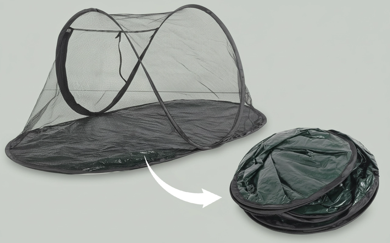 Detta tält fälls ihop snabbt för enkel transport var som helst. Montering är enkel, så husdjur kan leka eller vila direkt.
