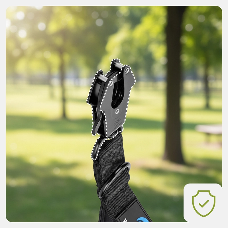 Snabbkoppling fästs eller lossas på bara några sekunder. Inget krångel vid brådskande tillfällen eller när du går in i fordon.