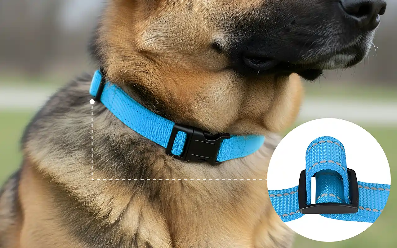 Regn eller solsken, min hunds halsband håller för varje äventyr. Färgerna sticker ut och passformen håller sig fin och stadig.