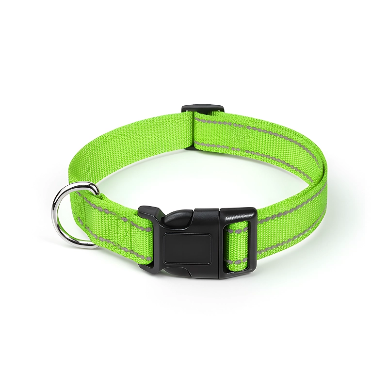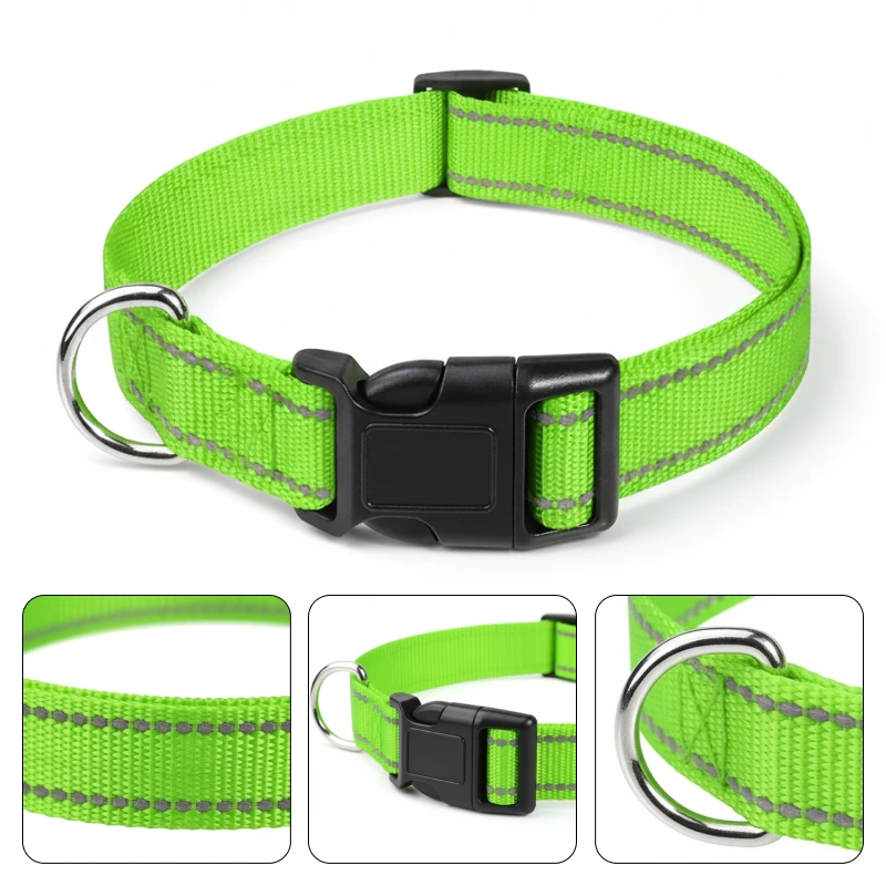 Det här halsbandet är bekvämt för min vovve och jag älskar hur lätt jag kan justera det. Hon glider inte ur, och de reflekterande delarna är superljusa.