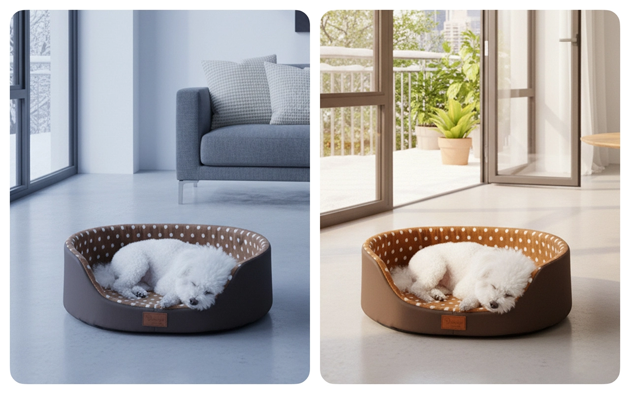 Upphöjda kanter ger skonsamt stöd för huvud och nacke. Sovställningen förblir naturlig, vilket hjälper ditt husdjur att slappna av ordentligt.
