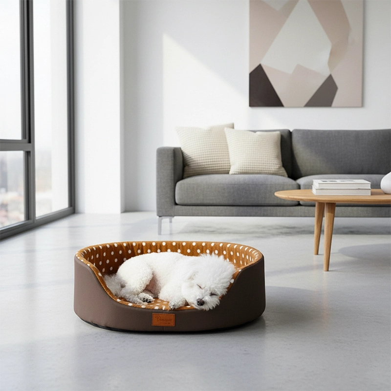 Rund Hundsäng Ergonomiskt Husdjursbo med Höga Kanter