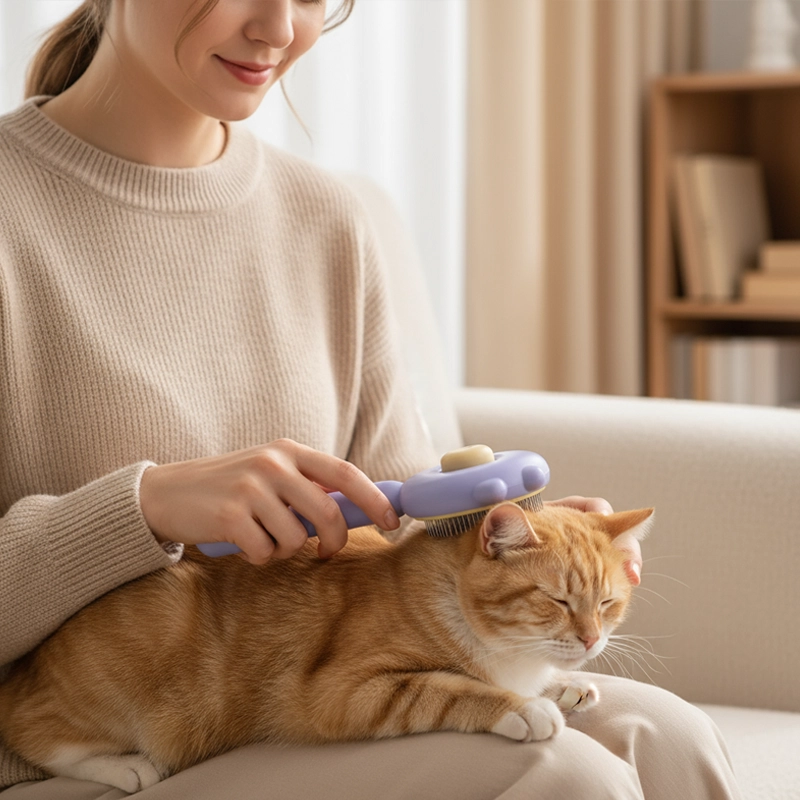 Självrengörande kattborste för pälsvård och tovutredning – avfällningsverktyg