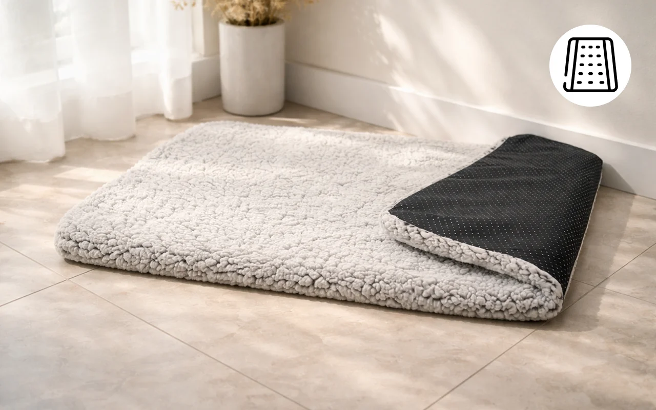 Den stadiga basen förhindrar glidning på kakel- eller trägolv. Husdjuren ligger tryggt även om de sträcker ut sig eller ändrar position.