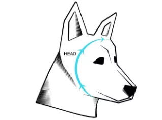 - Linda måttbandet runt hundens huvud horisontellt, precis runt ögonen.