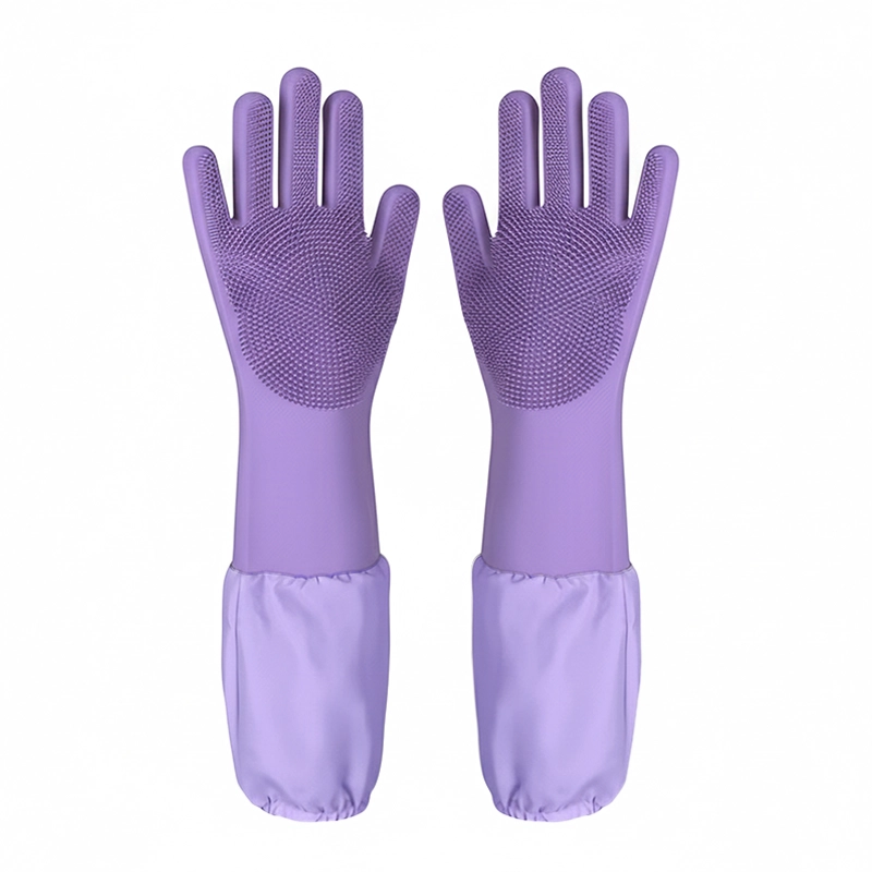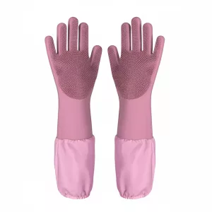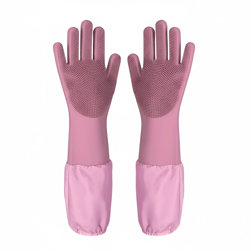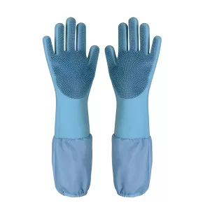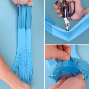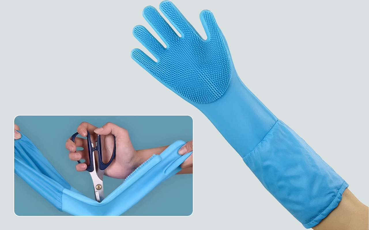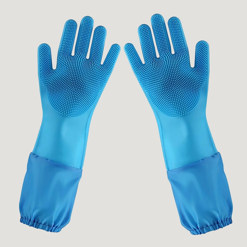 Stark silikon håller huden torr och skyddar armarna från vatten. Inga starka kemikalier kommer i kontakt med din hud vid varje tvätt.